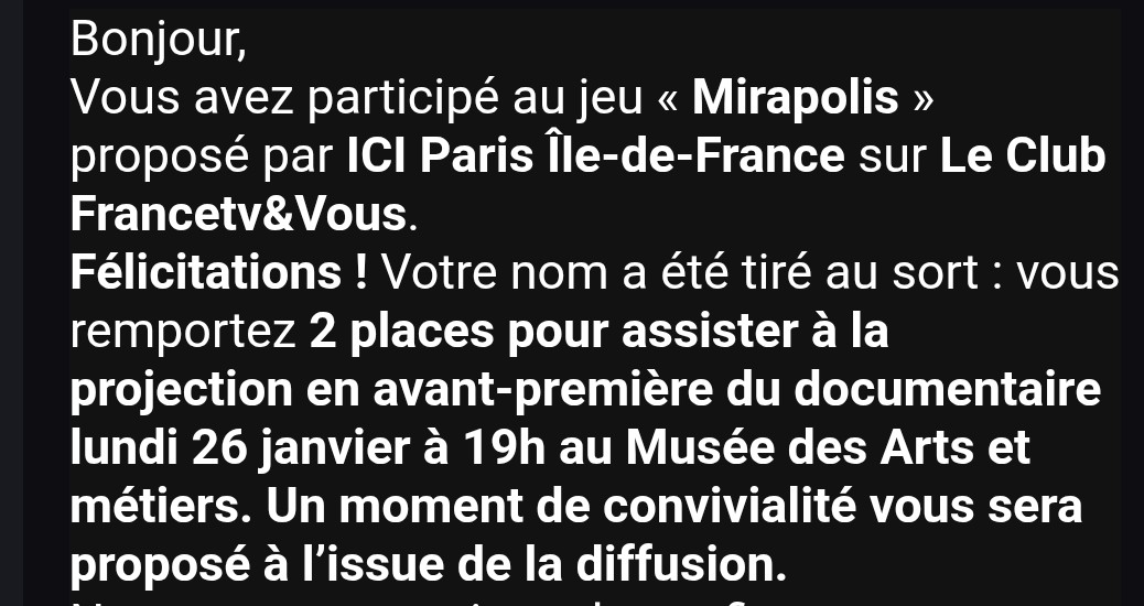 « Super, reçues ce jour! 1er lot depuis ma reprise des concours en novembre. C'est un début! Merci aux organisateurs et à notre Génie et tous ceux qui font vivre ce site! »