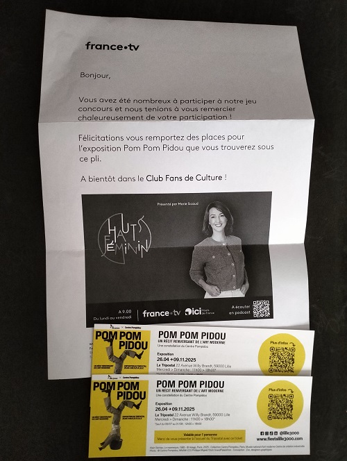 « J'ai gagné 2 entrées pour l'exposition "Pom Pom Pidou" à Lille.