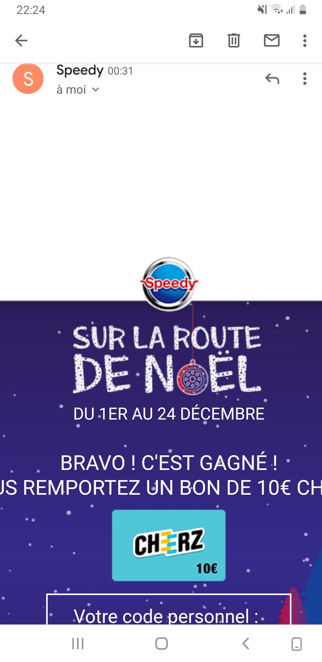 « Gagné un bon d'achat de 10 euros chez cheerz au calendrier de l'avent Speedy ! »