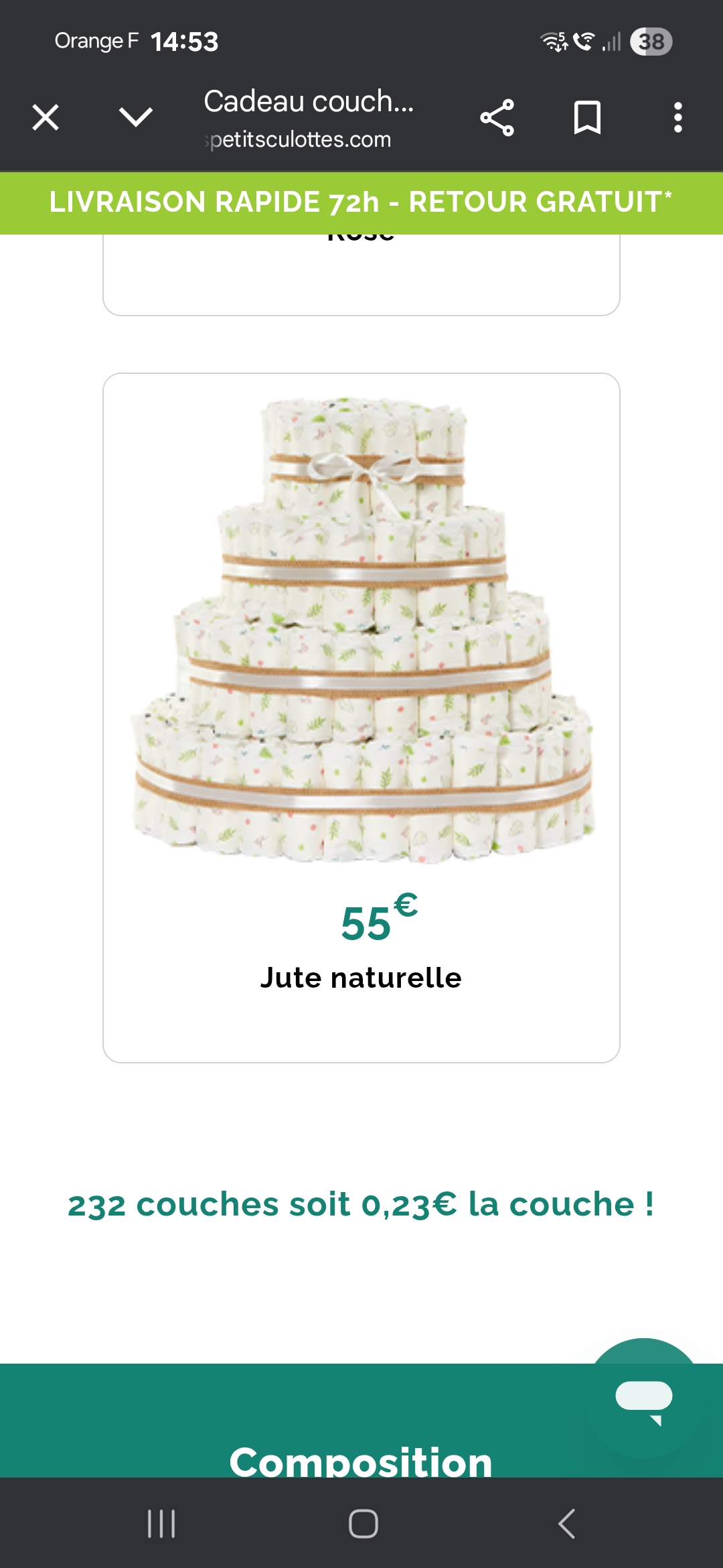 Cadeau gagné : Un gâteau de couches