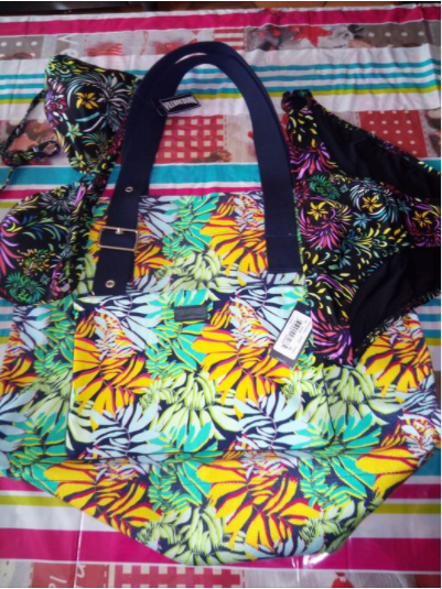 J'ai gagné un assortiment de plage contenant : 1 maillot ,1 sac de plage ,1 petite pochette.
