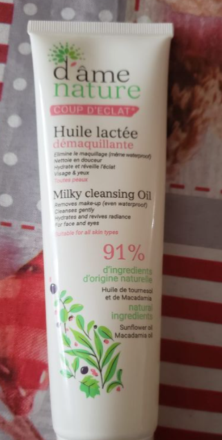 Je suis heureuse d'avoir reçu l'Huile Démaquillante Lactée d'Âme nature.