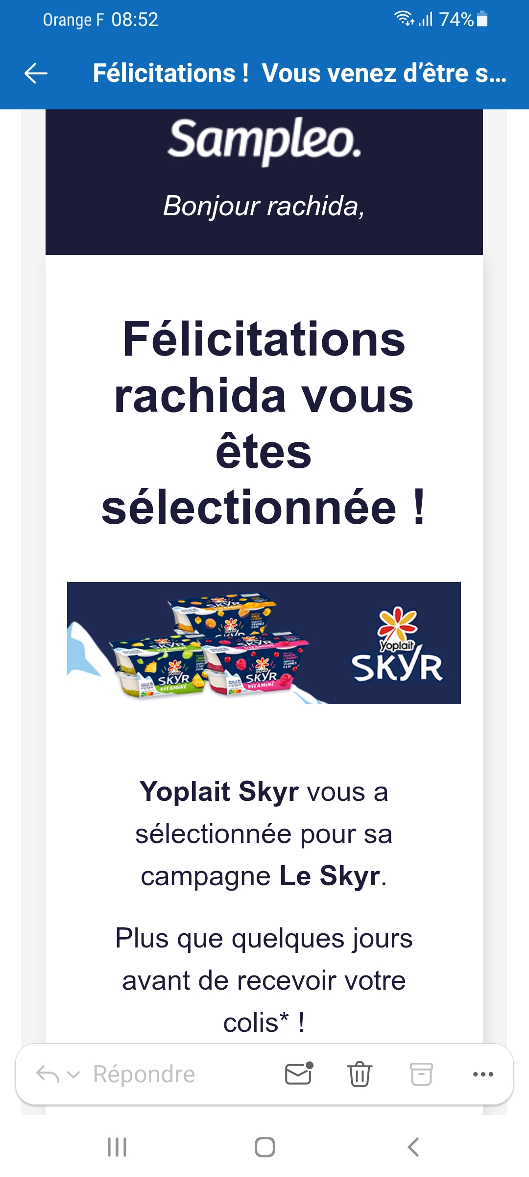 « Sélectionnée par sampleo pour tester les yaourts yoplait skyr, merci à eux et au Génie. »