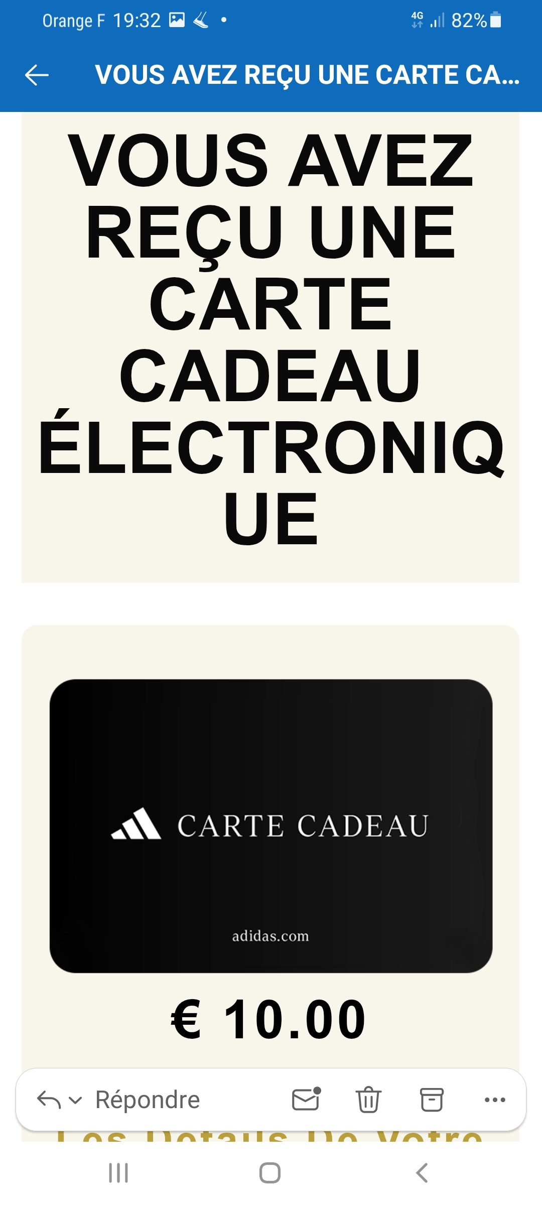 Cadeau gagné : Une carte cadeau Adidas de 10 euros
