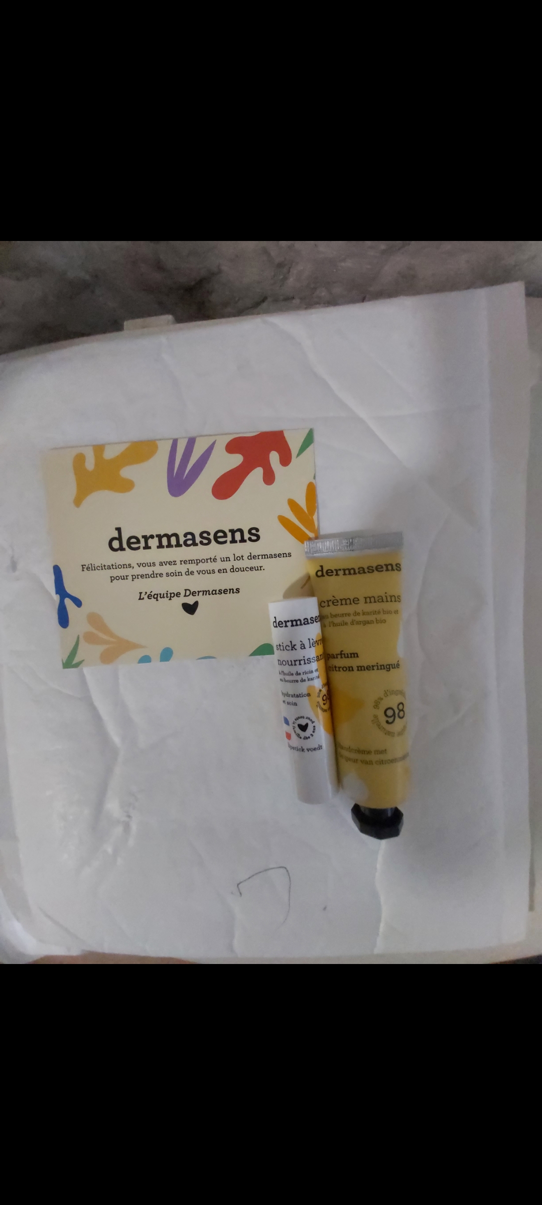 « Gagné au concours Dermasens livré par DPD merci à eux et au Génie. »