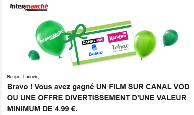 Félicitations, vous êtes l'un des gagnants de notre jeu concours !