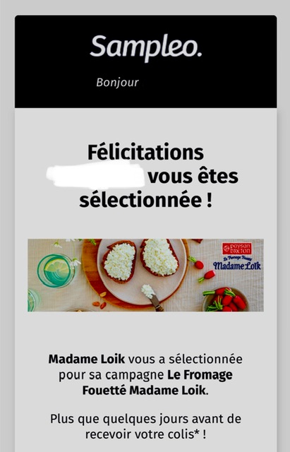 « Merci Sampléo et le Génie pour cette sélection au test du fromage fouetté de Madame Loïc »