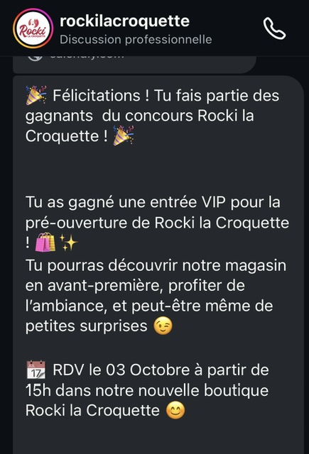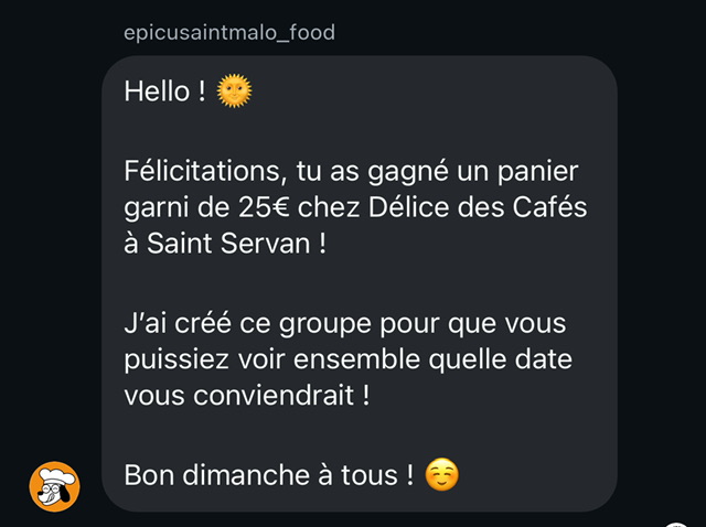 « Merci aux organisateurs et au Génie , lot remporté sur Instagram »