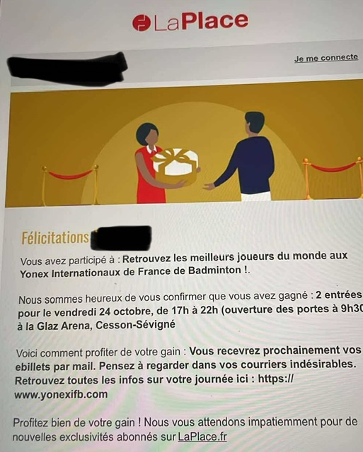 « Merci Ouest-France pour ce gain qui ravira ma fille qui pratique le badminton et pourra rencontrer les champions de France »