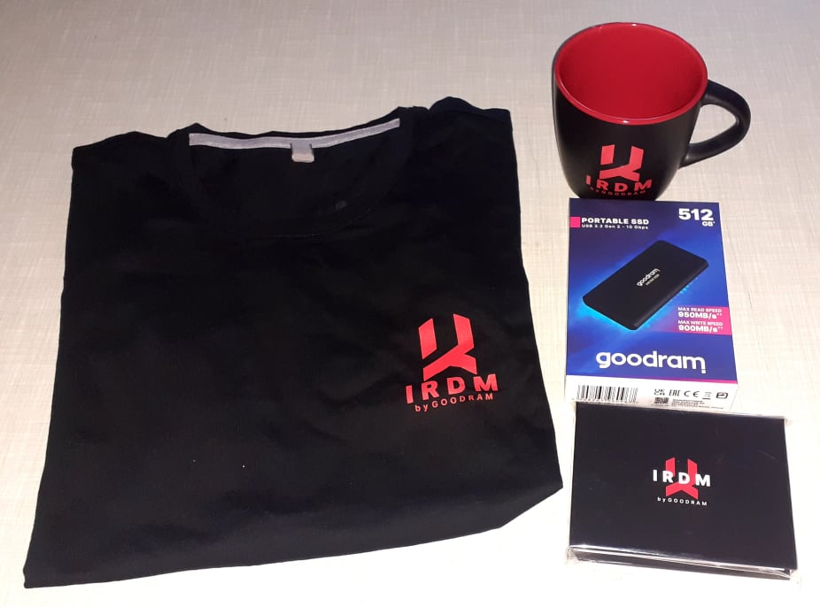 « J'ai reçu hier dans ma boite aux lettres un colis contenant un disque dur 512 GB + 1 Tee-shirt + 1 Mug + 1 Carnet de marque Goodram.