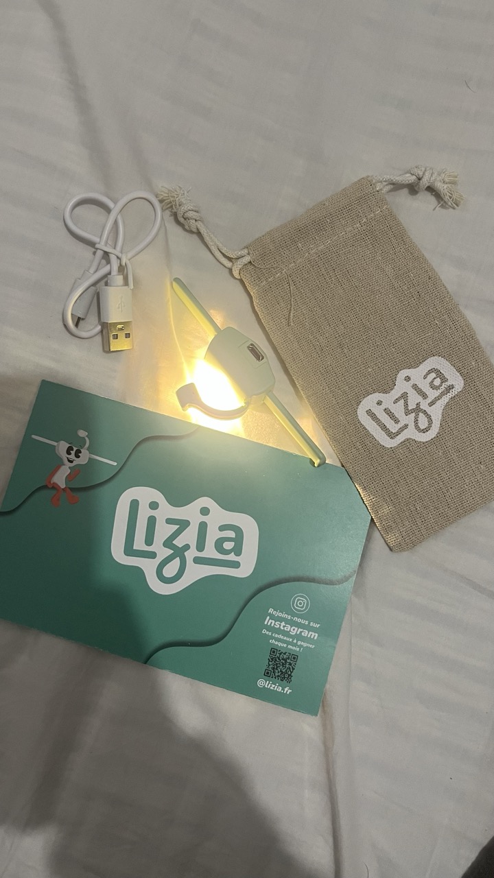 « Une lampe de lecture de la marque Lizia dont j'ai pu choisir la couleur. Gagné avec un concours insta entre une influenceuse livres et la marque. Super pratique je suis contente