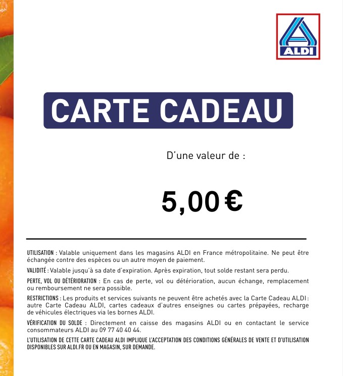 Cadeau gagné : 1 carte cadeau de 5 euros