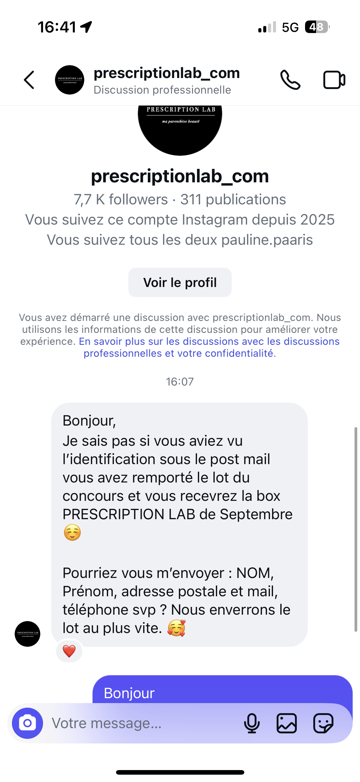 « Gagné sur Instagram (tirage au sort) la box de septembre de Prescription Lab, composé de plusieurs produits de beauté (valeur 83€)