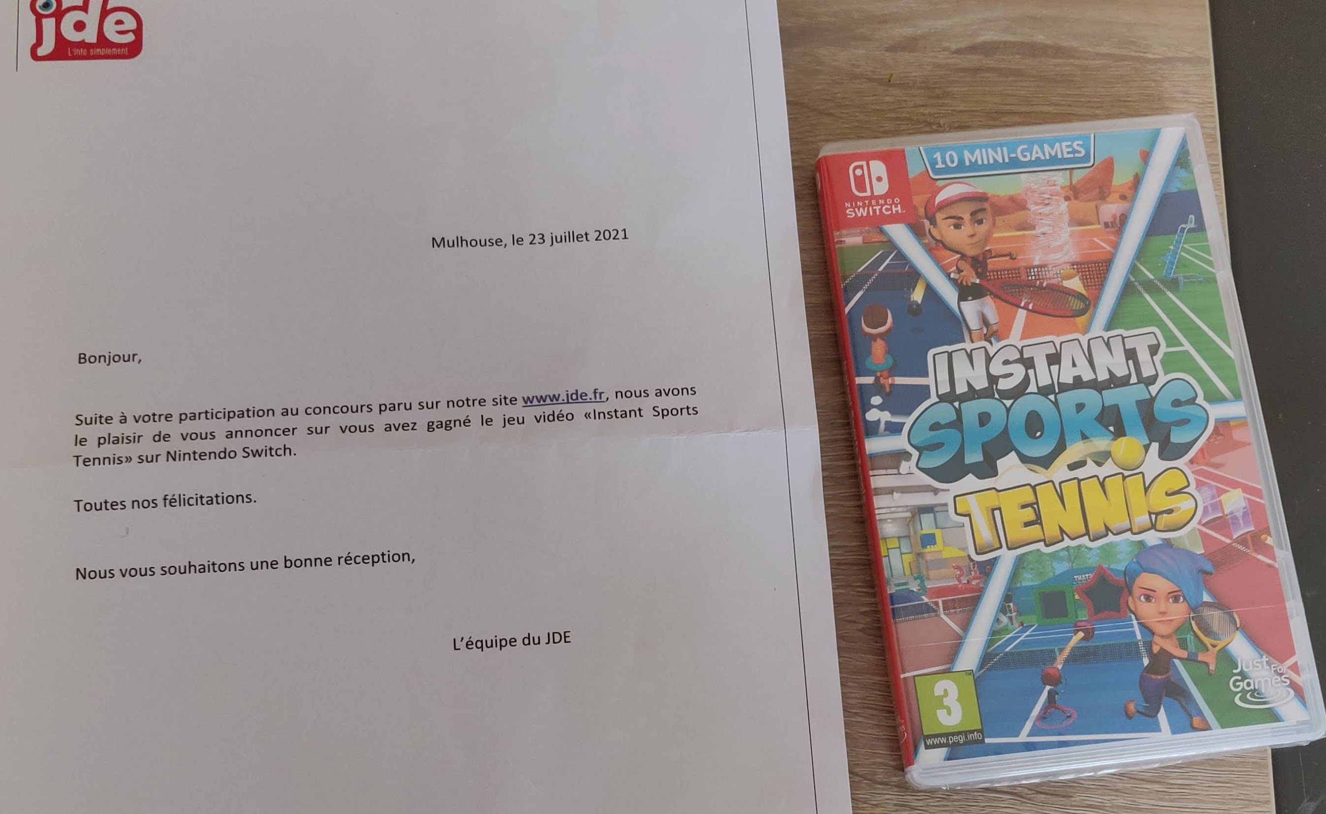 « Jeu de console Switch Instant sport Tennis gagné via JDE par mail (n°322774) ! Merci JDE et le Génie