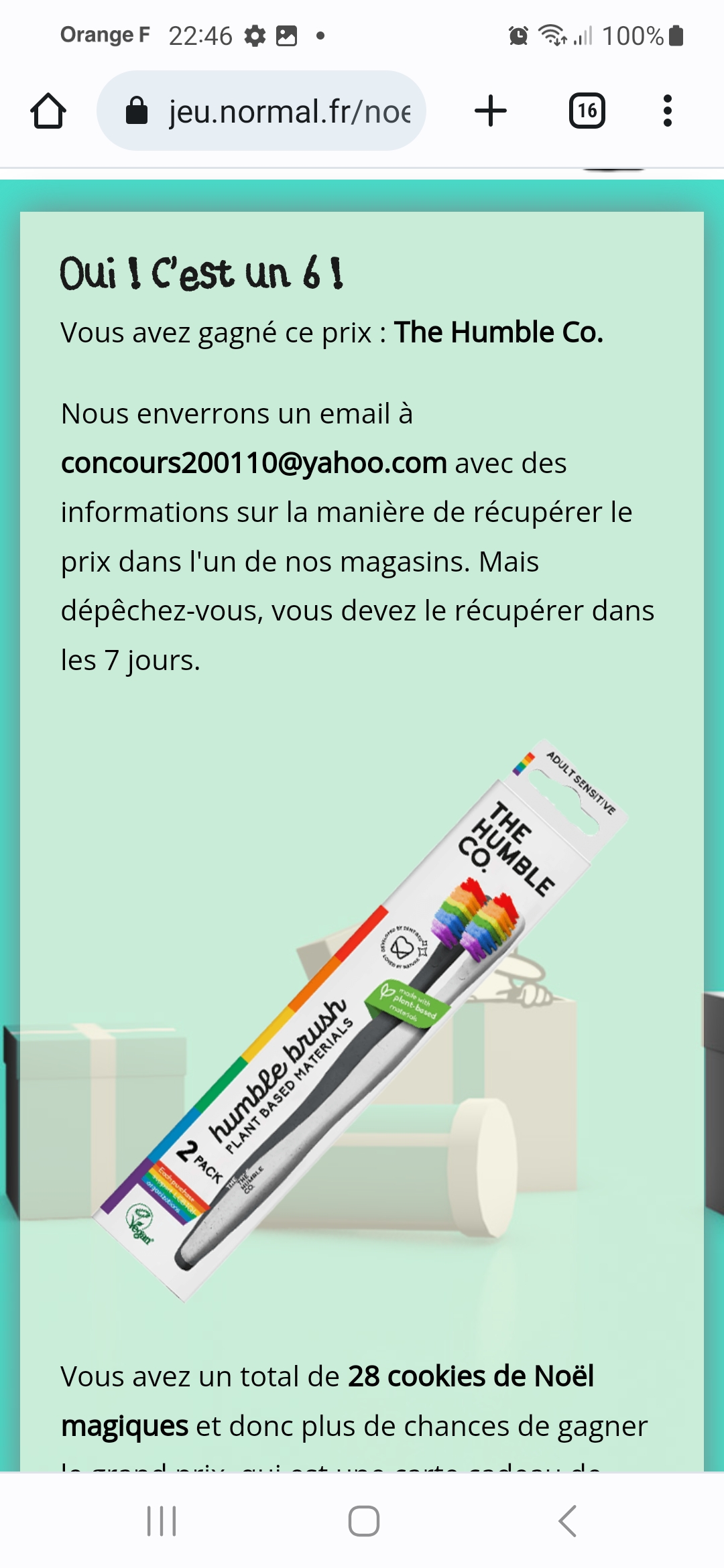 « Encore un cadeau de gagné au jeu instant gagnant normal, merci au génie. »