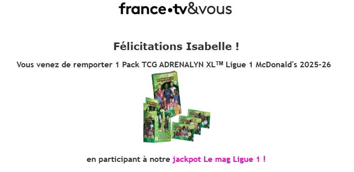 « Super contente d'avoir gagné aux instants gagnants France Télévisions, mon neveu va être ravi ! »