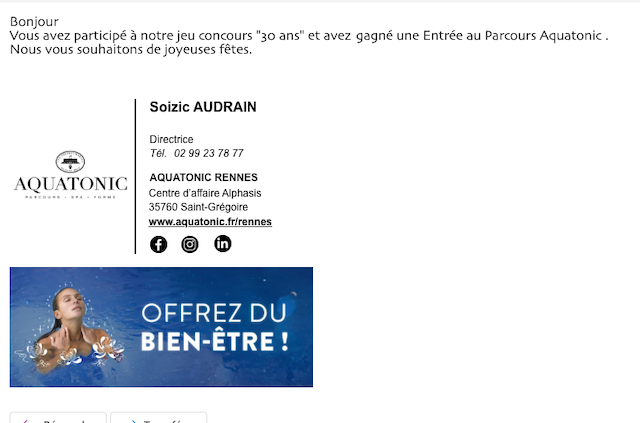 Nous avons le plaisir de vous informer que vous avez remporté :