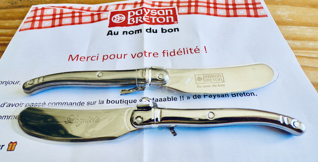 J'ai donc demandé deux tartineurs Laguiole que j'ai reçu ce matin. »