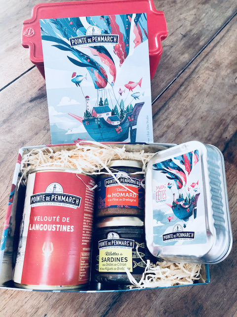 « Gagné sur la page Instagram de Pépites2noisette, un coffret Pointe de Penmarch composé de terrines, velouté et sardines à l'huile. Le coffret a été crée par Eor, un créateur breton que j'aime beaucoup.
