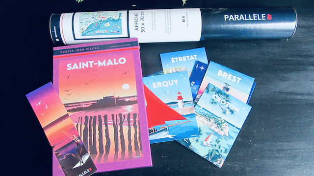 « Sur la page Instagram de Parallèle48, j'ai gagné un très joli lot : un puzzle de 1000 pièces de la plage du Sillon à St Malo, une très belle carte de Brest, et dix cartes postales de lieux symboliques de la région. J'ai pu choisir les thèmes, la qualité est magnifique et je suis ravie.