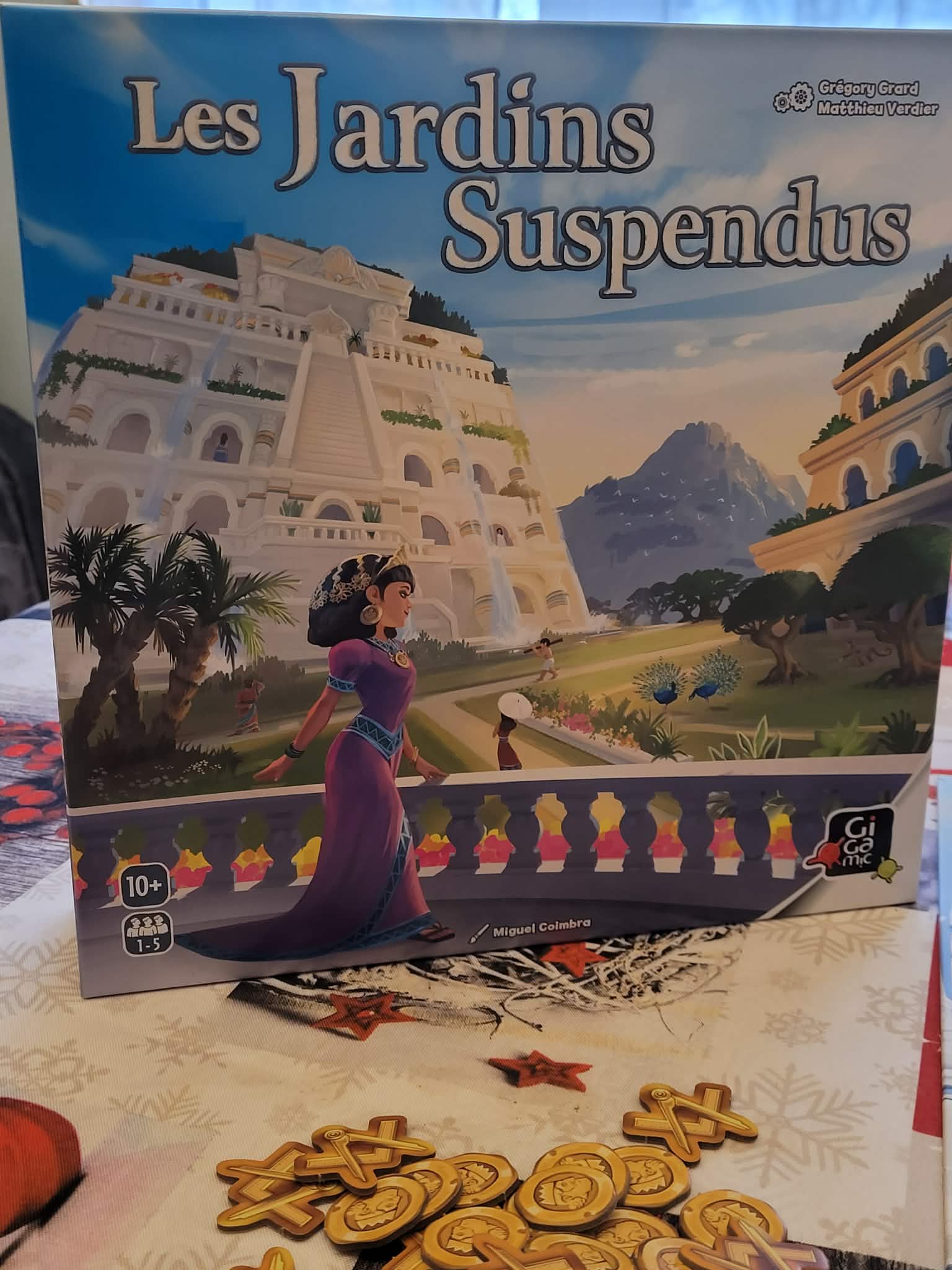« Le jeu Les jardins suspendus, un très beau jeu de société, gagné lors du calendrier de l'avent Gigamic sur insta. Il est super ! »