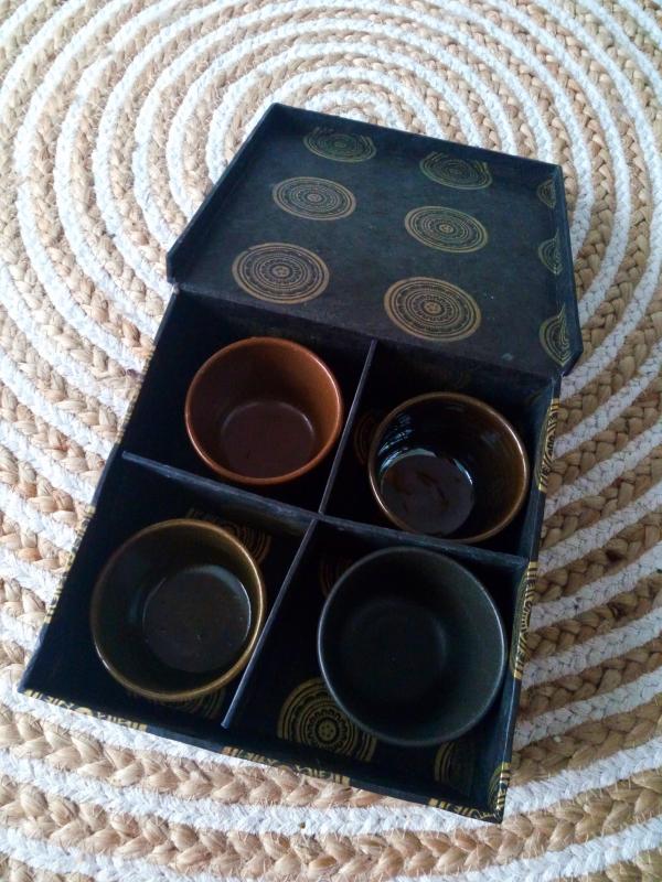 « Un mail reçu lundi me disant que j'avais été tiré au sort et que j'avais gagné un lot de 4 tasses à café artisanales réalisées par une communauté au Népal, il s'agit d'une marque éco-solidaire. Je les ai reçues le lendemain dans une magnifique boîte noire et dorée.