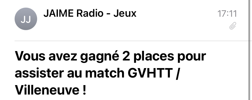 Cadeau gagné : 2 places pour assister au match GVHTT