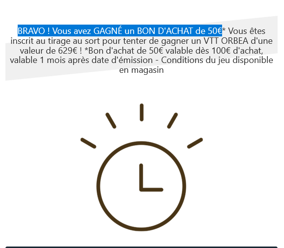 « Bravo, vous avez gagné 10€ offerts dès 20€ d'achat chez Cheerz »
