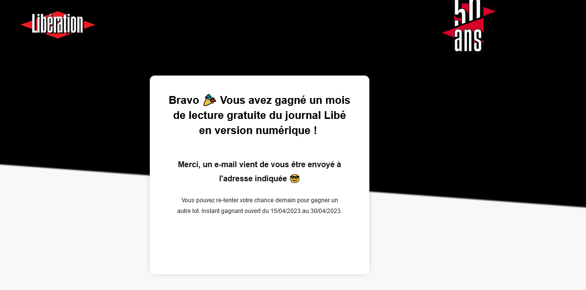 « Vous avez gagné un mois de lecture gratuite du journal Libé en version numérique ! »