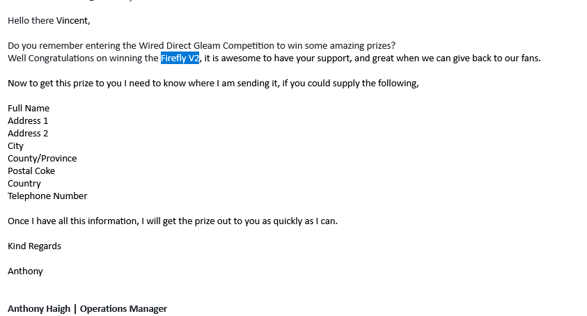 Gagné par zeppelin_64 il y a 1 an« Message reçu : gagné une "Razer Firefly V2 Mouse " ; confirmé sur la liste des gagnants visible sur notre site préféré.