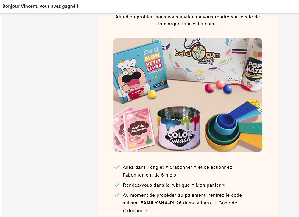 « Je viens de recevoir le mail ci-dessous, j'ai gagné 1 box anniversaire Gabby et la Maison magique avec La Grande Récré. Merci. »